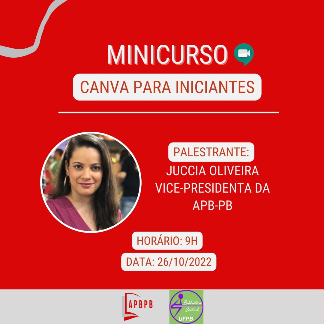 Como parte das ações da Semana Nacional do Livro e da Biblioteca, a Associação Profissional de Bibliotecários da Paraíba e a Biblioteca Central da UFPB oferecem um minicurso gratuito sobre a plataforma de design gráfico Canva, no dia 26 de outubro, das 9h às 12h, via plataforma Meet.