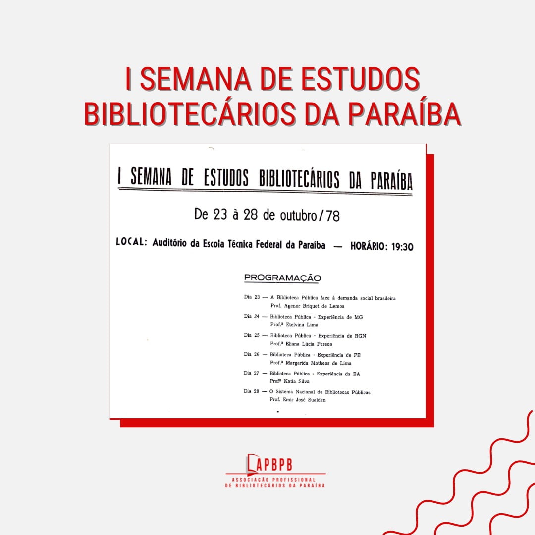 I Semana de Estudos Bibliotecários na Paraíba (28/08/1978 a 02/09/1978)