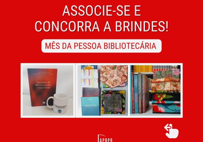 14 abr 23 Eunice Peixoto Associe-se e concorra a brindes! Como parte das ações do Mês da Pessoa Bibliotecária, a Associação Profissional de Bibliotecários da…