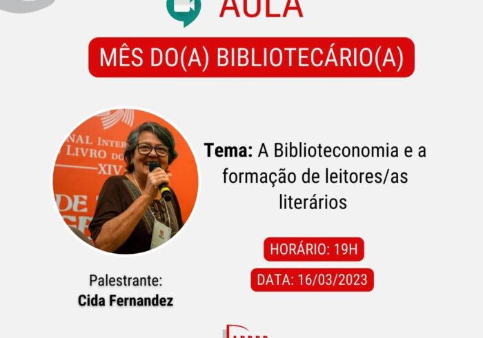 14 abr 23 Eunice Peixoto Aula | A Biblioteconomia e a formação de leitores/as literários Como parte das ações do Mês do(a) Bibliotecário(a), a Associação Profissional de Bibliotecários da Paraíba…