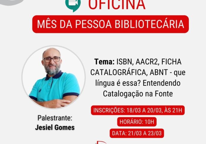 14 abr 23 Eunice Peixoto Oficina | Que língua é essa? Entendendo a catalogação na fonte Como parte das ações do Mês da Pessoa Bibliotecária, a Associação Profissional de Bibliotecários da…